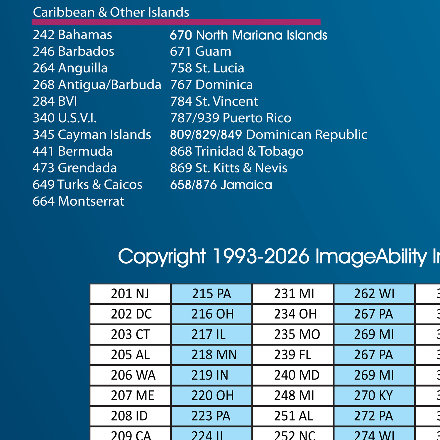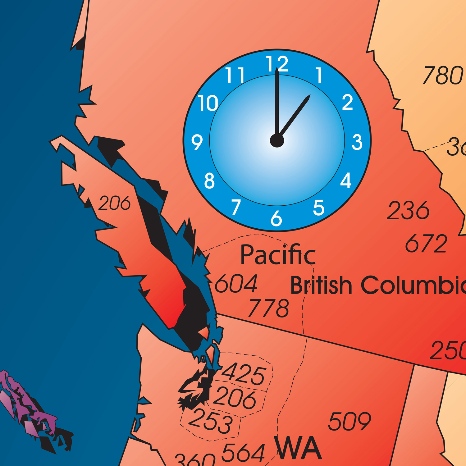 Designed as a quick reference guide, North America time zone area code maps include a table of all current area codes. Listed numerically, the area codes appear with their corresponding state or province. Find the location on the map to determine its time zone and time difference.