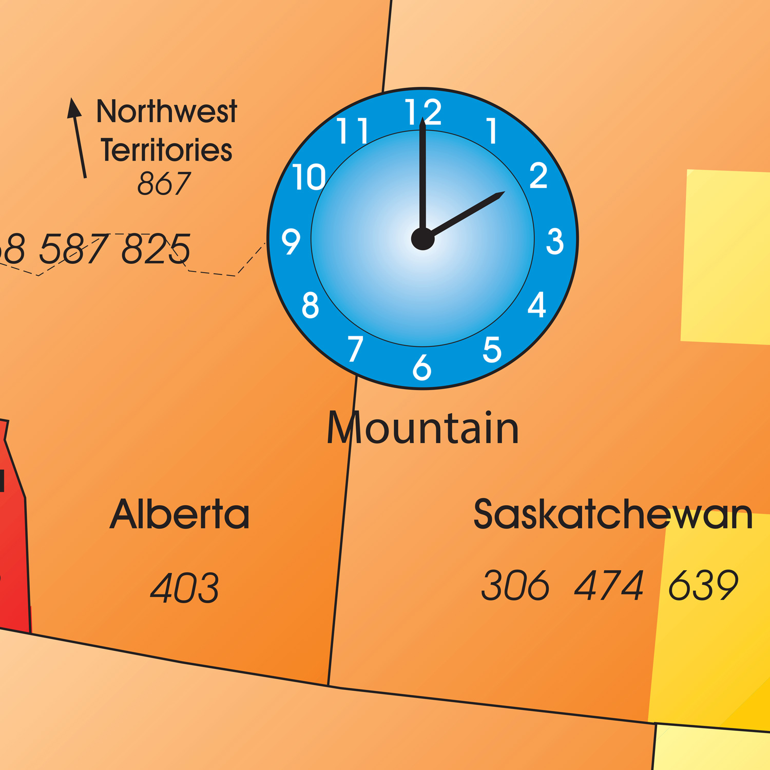 North America time zone area code maps are great for working with people across the United States, Canada, and Mexico. The bright, full color maps feature a gradation that gives a 3D look, with marked time zones and area codes. Quickly find the location and time difference of a caller, client, or associate.